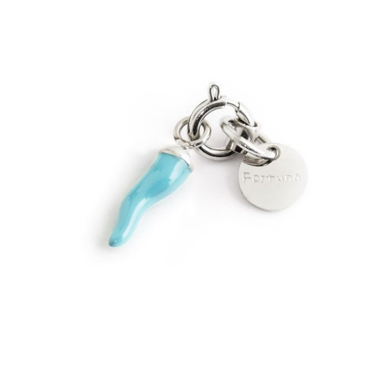 Descrizione: ciondolo a forma di cornetto con moschettone in acciaio