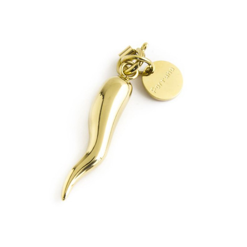 Descrizione: ciondolo a forma di cornetto con moschettone in acciaio