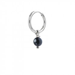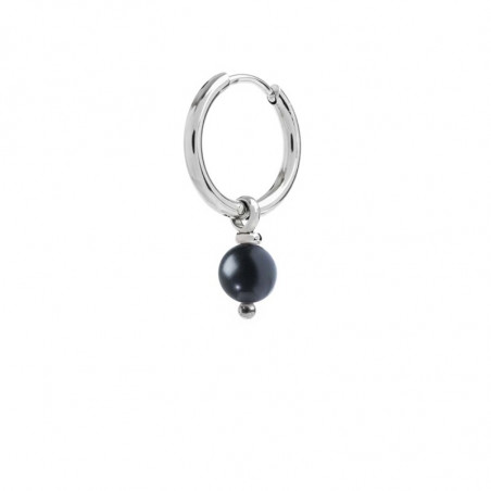 Descrizione: orecchino mono a cerchio in acciaio con inserito un anellino da cui pende una sfera