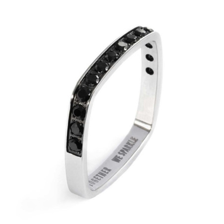 Descrizione: anello fedina squadrata in acciaio con cubic zirconia di diametro 2 mm. Nella parte interna è incisa la scritta "TOGETHER WE SPARKLE", logo Marlù e taglia presenti sui lati interni.