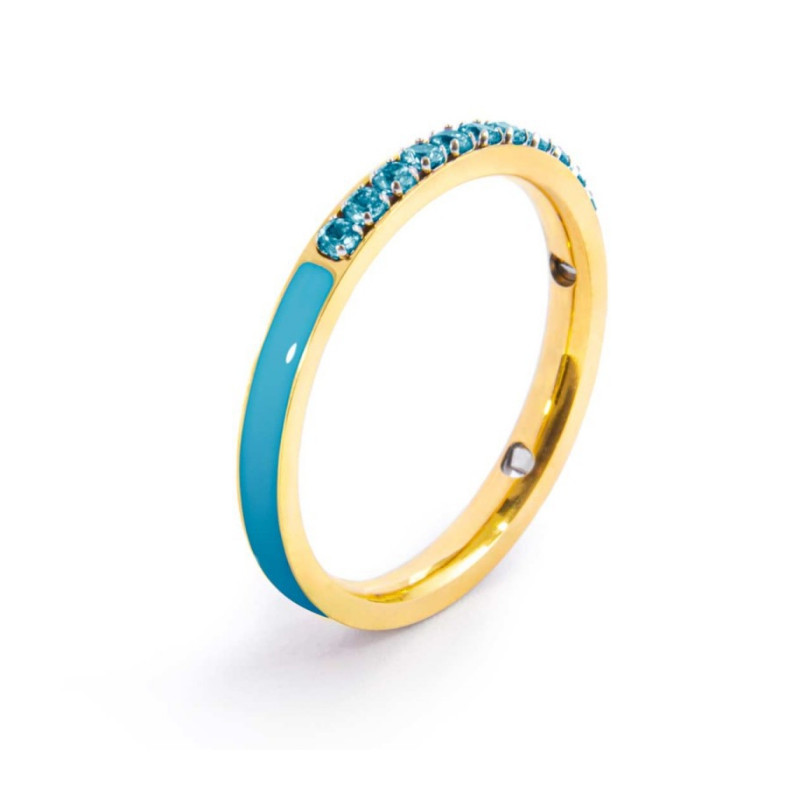 Descrizione: anello fedina in acciaio anallergico con cubic zirconia fi 1,70 mm e smalto. Nella parte interna laserati il logo Marlù e la taglia.
