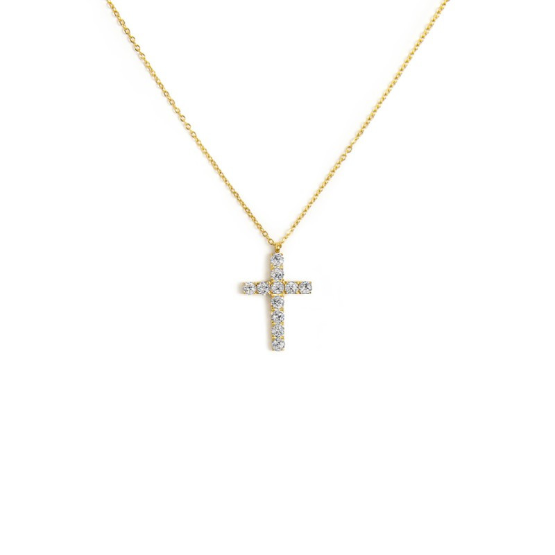 Descrizione: collana in acciaio con croce pendente 1,7 x 2,6 cm con cubic zirconia bianchi. Marlù logo laserato sul lato della croce.