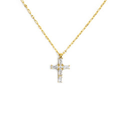 Descrizione: collana in acciaio con croce pendente 1,4 x 2,3 cm con cristalli baguette e al centro un cubic zirconia bianco. Marlù logo laserato sul lato della croce.