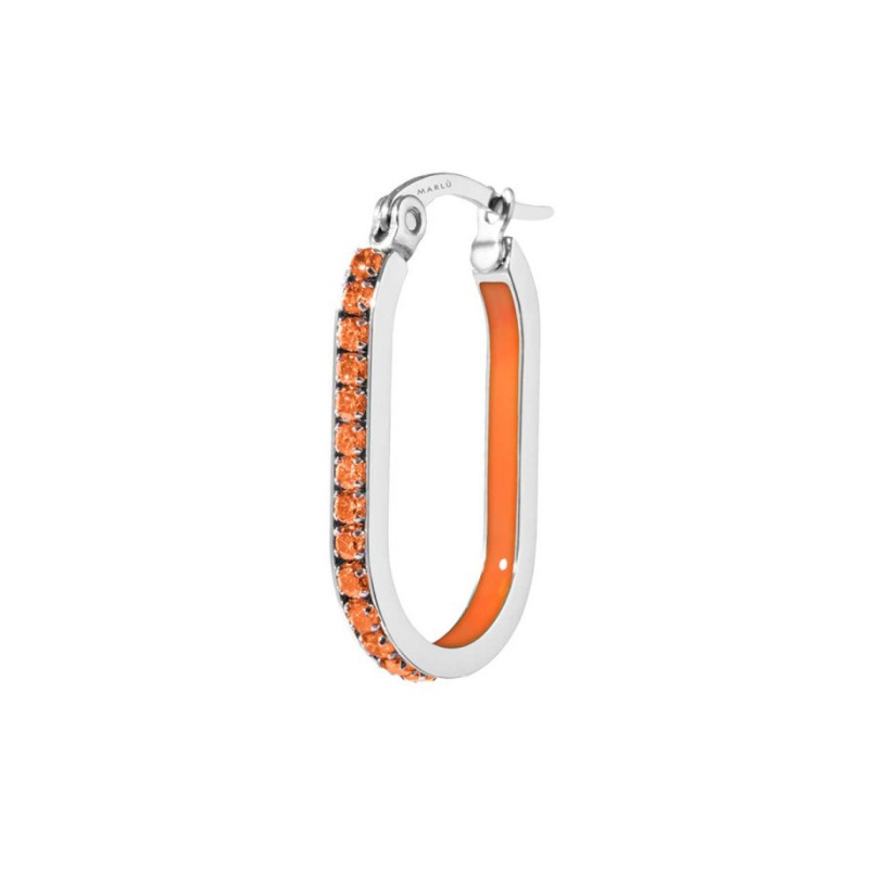 Descrizione: mono orecchino a cerchio ovale con cubic zirconia fi 1,70 mm e sezione interna con smalto ed acciaio anallergico. Logo Marlù laserato sulla chiusura.