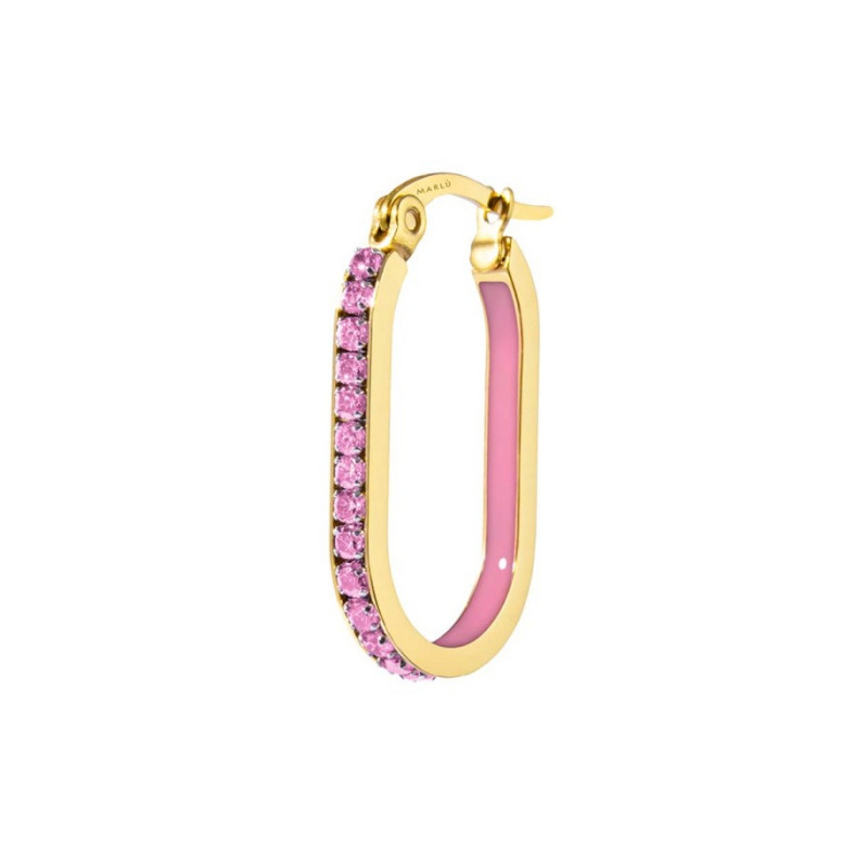 Descrizione: mono orecchino a cerchio ovale con cubic zirconia fi 1,70 mm e sezione interna con smalto ed acciaio anallergico. Logo Marlù laserato sulla chiusura.