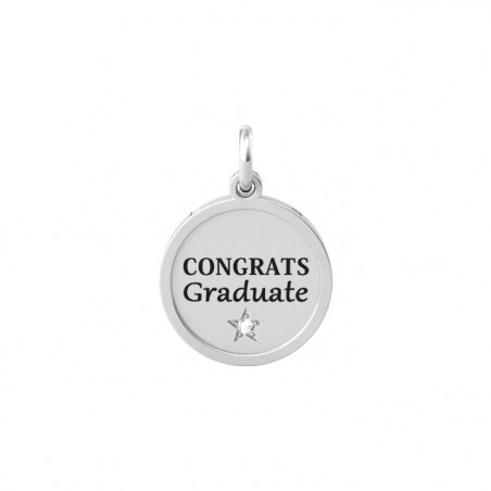 Descrizione: charm tondo in acciaio anallergico e cristallo - scritta smaltata: CONGRATS Graduate
