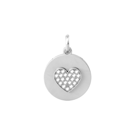Descrizione: charm tondo in acciaio anallergico con simbolo cuore in pavè