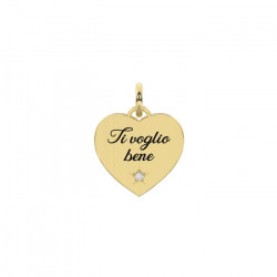 Descrizione: charm taglio cuore in acciaio anallergico e cristallo con scritta smaltata: Ti voglio bene