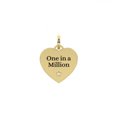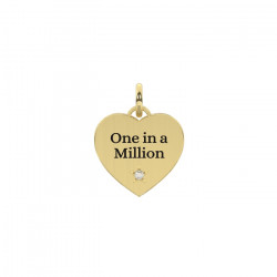Descrizione: charm taglio cuore in acciaio anallergico e cristallo con scritta smaltata: One in a Million