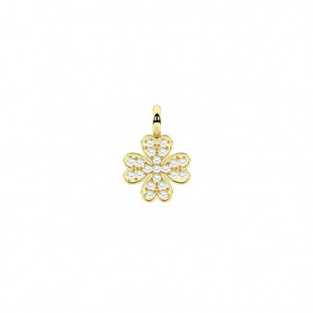 Descrizione: charm quadrifoglio in acciaio anallergico e cristalli pavè
