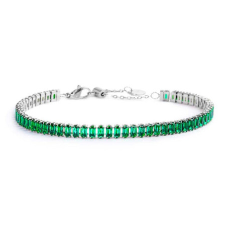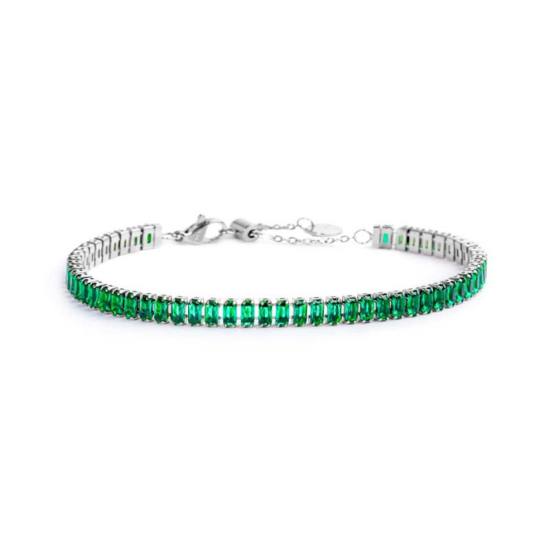 Descrizione: equilibrato, vivido, sofisticato, questo autunno il verde smeraldo è il protagonista assoluto della collezione Marlù "Dress Green Feel Chic". E il colore si antropomorfizza, si fa animale sinuoso, diventa #serpente. Bracciale catena tennis in acciaio con baguette cristallo nanometer verde. Chiusura con moschettone. Marlù logo tag presente all' estremità.