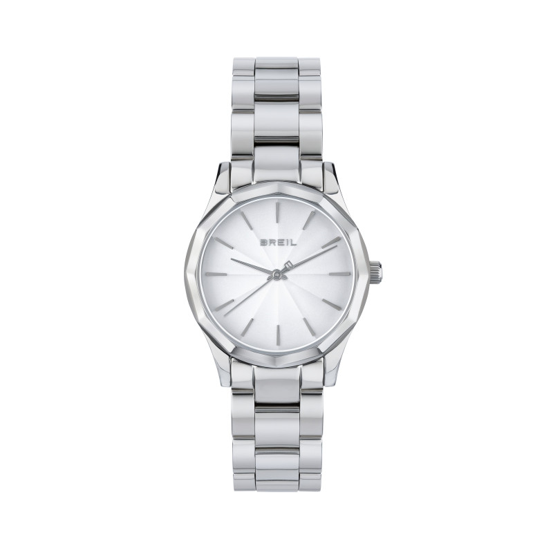 Descrizione: movimento quarzo TMI VJ21. WR 10 atm. Cassa e bracciale in acciaio lucido. Lunetta sfaccettata. Indici applicati. Vetro minerale. Fondello a vite. Chiusura con pulsanti.