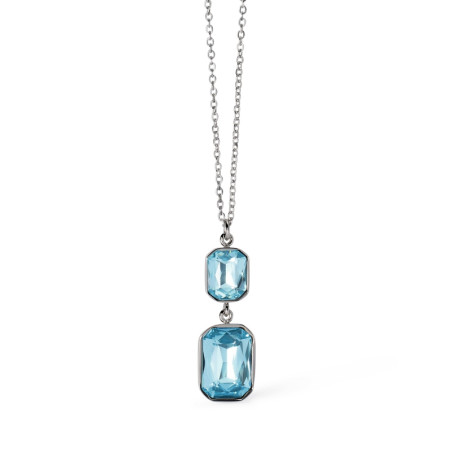 Descrizione: Girocollo in acciaio 316L, lunghezza regolabile da 40 a 45 cm, con catena rolò 1,5 mm e pendente con cristalli ottagonali8x10 e 10x 14 mm.