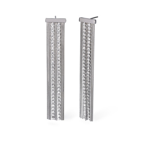 Descrizione: Orecchini in acciaio 316L, lunghezza 10.5 cm, con catene snake 1 mm e tennis di cristalli fu 2 mm.