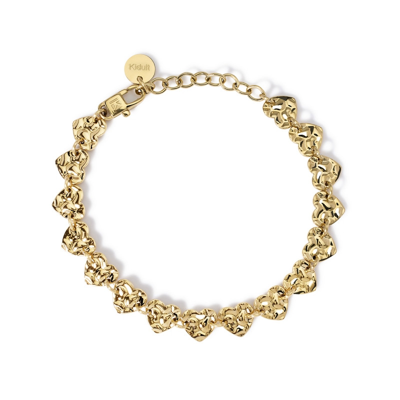 Descrizione: Bracciale in acciaio 316L, lunghezza regolabile da 16 a 19 cm, con elementi cuore martellati 8x7.5 mm.