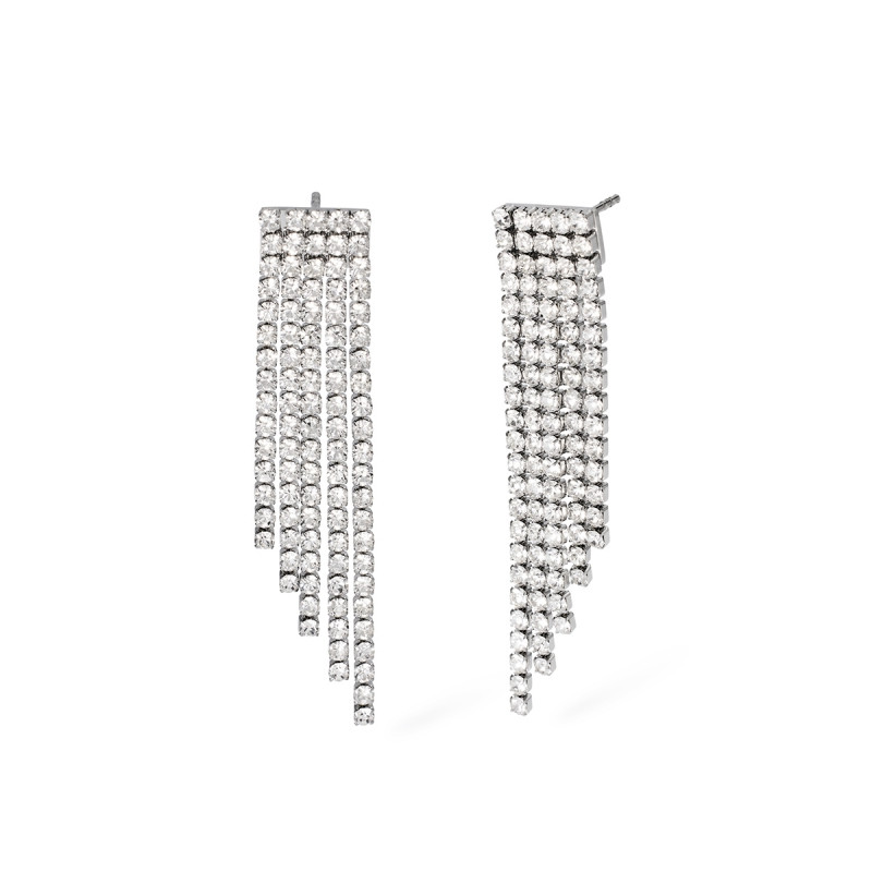Descrizione: Orecchini waterfall in acciaio 316L con tennis 5,2 cm e cristalli fi 2 mm.