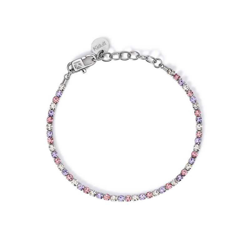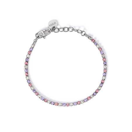 Descrizione: Bracciale tennis in acciaio 316L, lunghezza regolabile da 15.5 a 18 cm, con cristalli fi 2.5 mm.