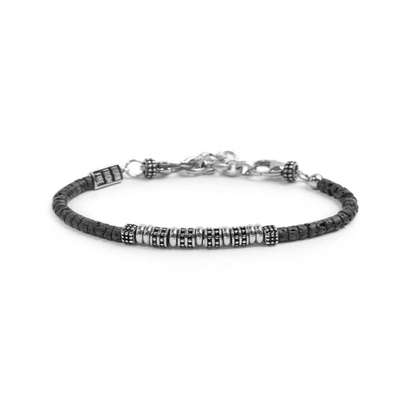 Descrizione: Bracciale acciaio, pietra lavica, black oil. Estensione con catena rolò removile/regolabile. Lunghezza tot. 22,8 cm regolabile da 22,8 a 19 cm