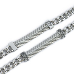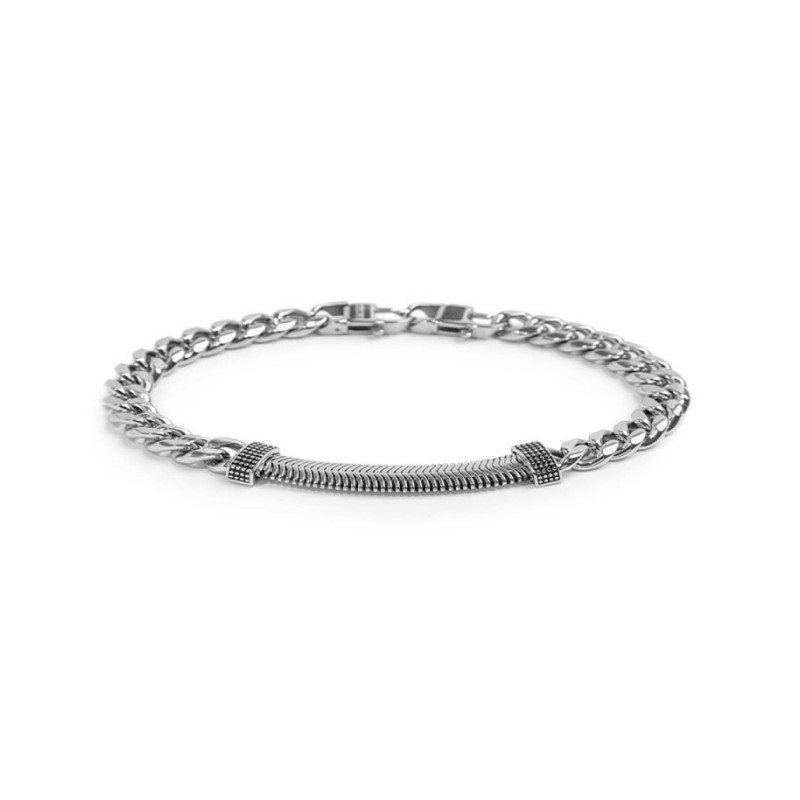 Descrizione: Bracciale acciaio, catena cuban sp. 8 mm, catena snake, black oil. Lunghezza tot. 22 cm regolabile da 22 a 20 cm tramite doppio moschettone removibile