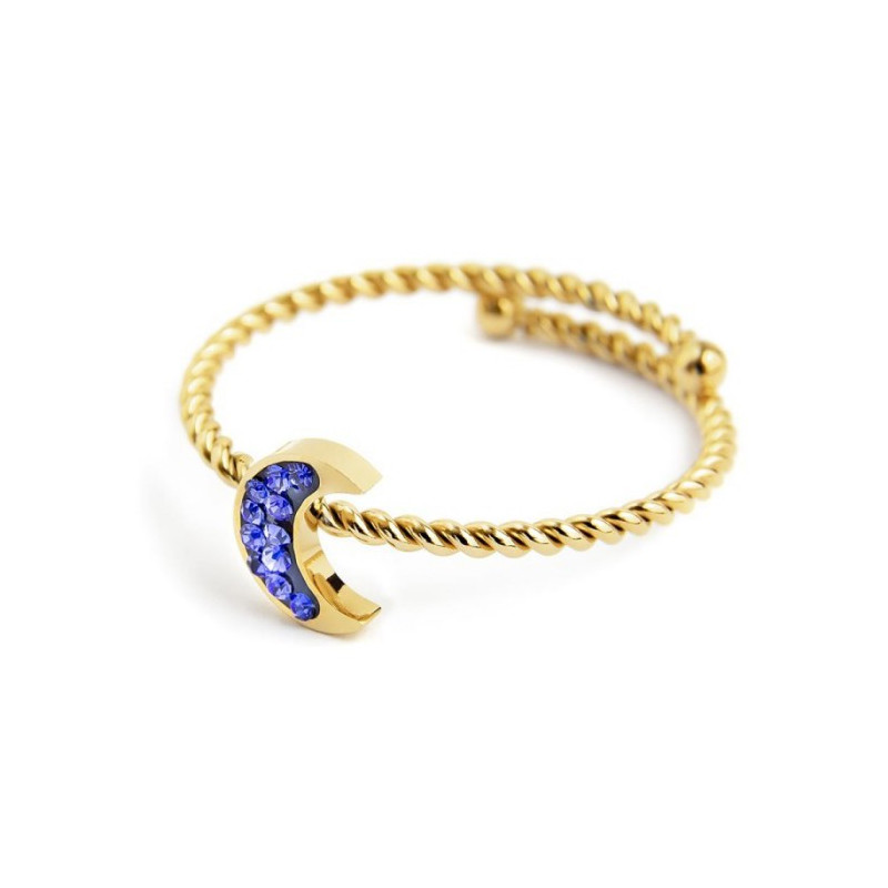 Descrizione: Anello in acciaio, ritorto, regolabile. Materiali: acciaio, cristalli