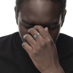 Descrizione: Anello in acciaio con black oil opaca a forma di piuma.