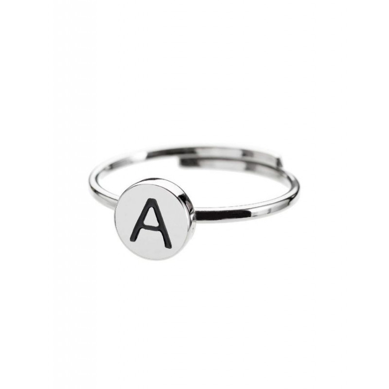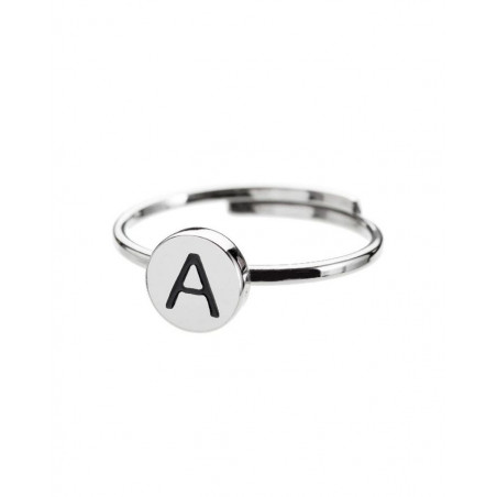 Descrizione: Anello regolabile in acciaio con lettera smaltata. Materiale: acciaio, smalto