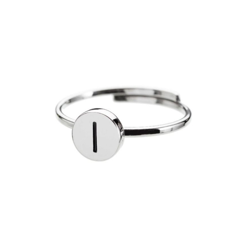 Descrizione: Anello regolabile in acciaio con lettera smaltata. Materiale: acciaio, smalto