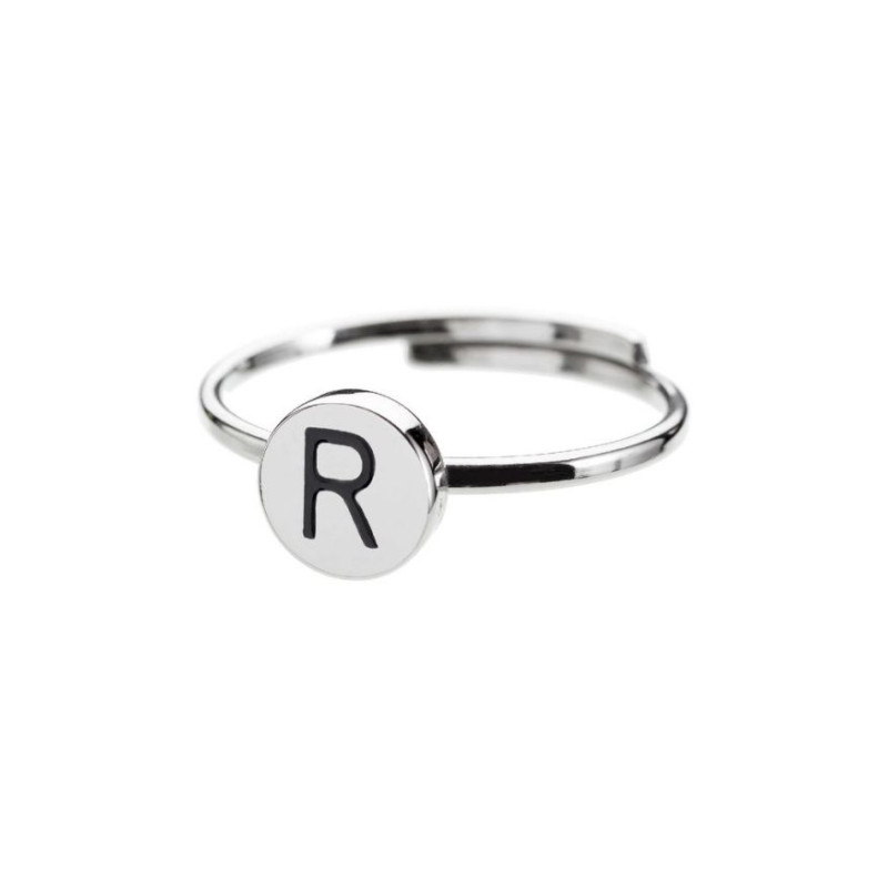 Descrizione: Anello regolabile in acciaio con lettera smaltata. Materiale: acciaio, smalto