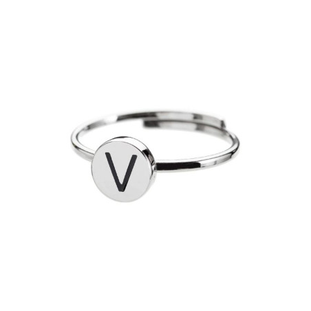 Descrizione: Anello regolabile in acciaio con lettera smaltata. Materiale: acciaio, smalto