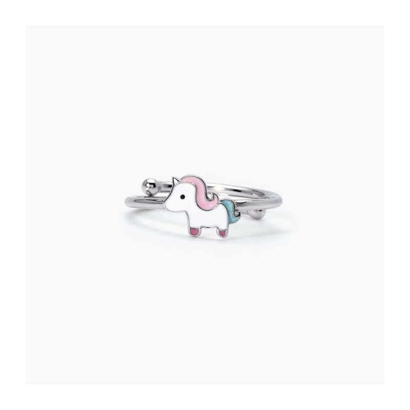 Descrizione: anello a filo con elemento unicorno smaltato multicolore