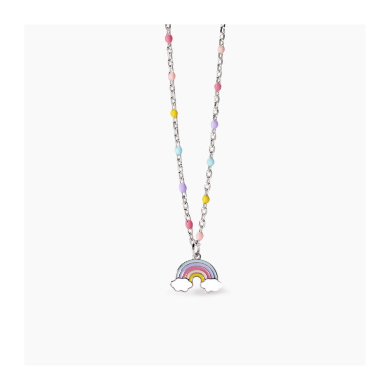 Descrizione: girocollo catena rolò con sfere smaltate ed arcobaleno pendente