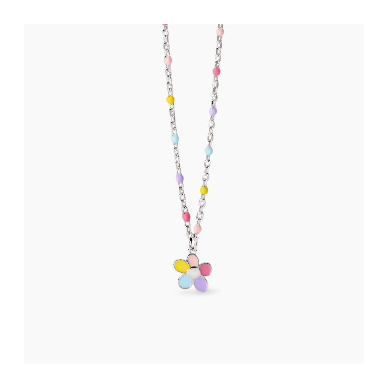 Descrizione: girocollo catena rolò con sfere smaltate e fiore pendente