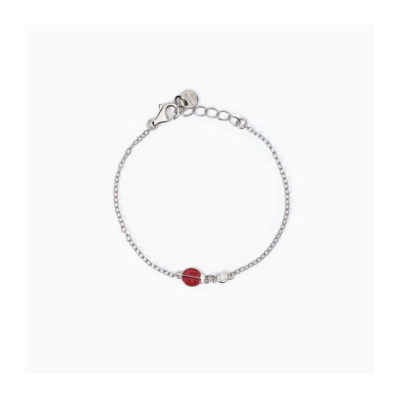 Descrizione: bracciale catena rolò con coccinella al centro smaltata rossa e zircone