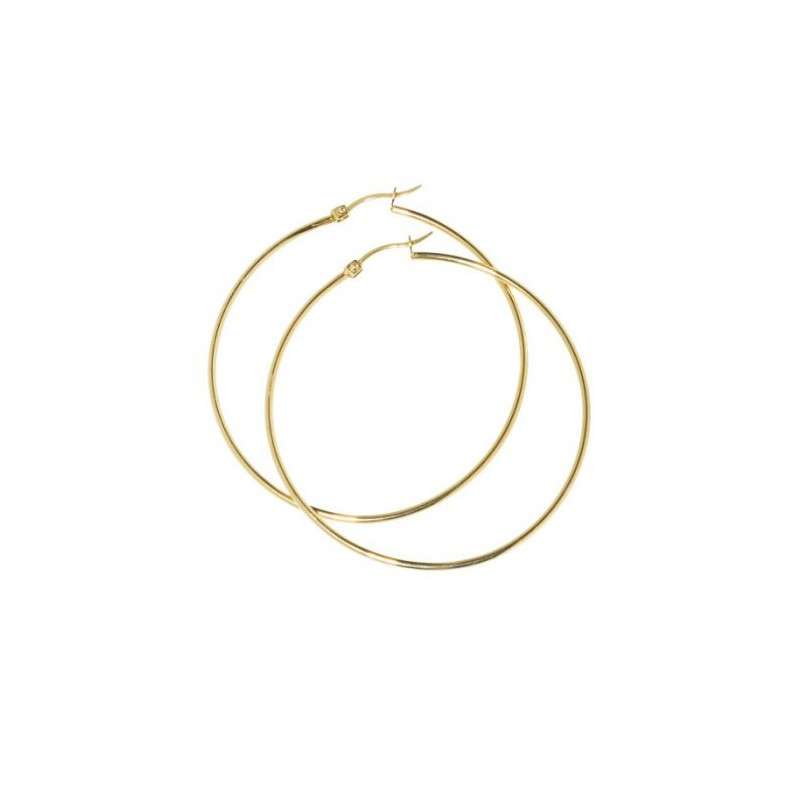 Descrizione: Orecchini in acciaio cerchio in acciaio diametro esterno 54 mm.