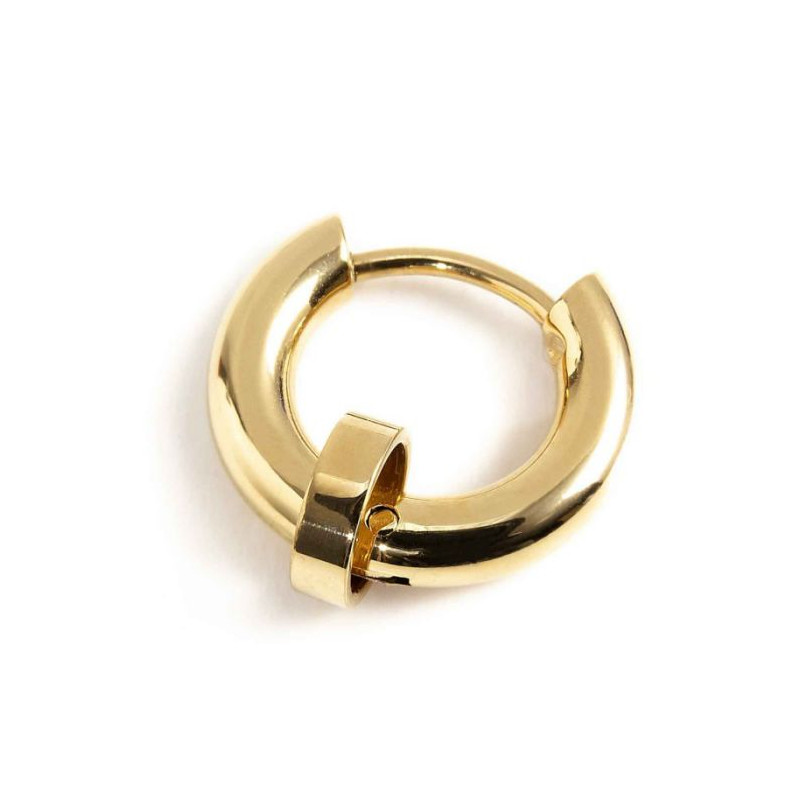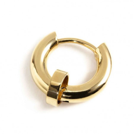 Descrizione: Mono orecchino in acciaio cerchio con diametro di 14 mm, con anello removibile per charm, la chiusura è a pressione. Il logo Marlù è presente sul lato.