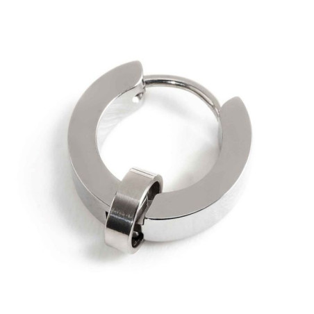 Descrizione: Mono orecchino ina cciaio cerchio con diametro di 14 mm, con spessore 3.80 mm, con anello removibile per charm, la chiusura è a pressione. Il logo Marlù è presente sul lato.