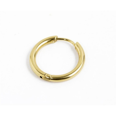 Descrizione: Mono orecchino acciaio, cerchio con diametro esterno 14 mm, spessore 1,90mm, chiusura a pressione. Logo Marlù laserato.