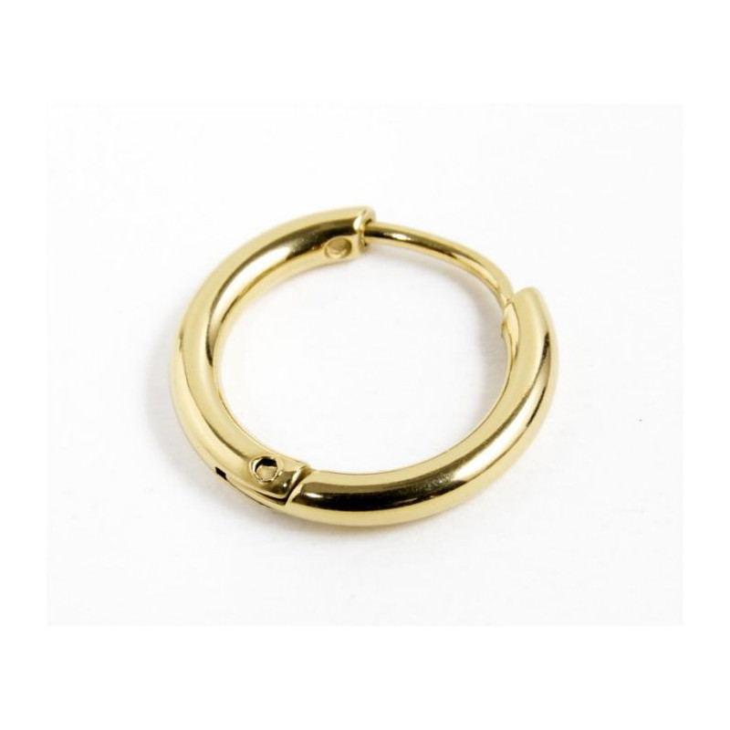 Descrizione: Mono orecchino acciaio, cerchio con diametro esterno 16 mm, spessore 1,90mm, chiusura a pressione. Logo Marlù laserato.
