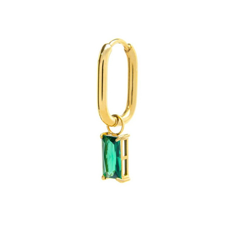 Descrizione: Mono orecchino acciaio ovale 1,6*1,1 cm con chiusura a pressione, con cubic zirconia taglio baguette pendente. Logo Marlù laserato sul fianco dell'orecchino e sul fondo del pendente. Lunghezza totale 2,6 cm.