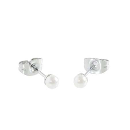 Descrizione: Orecchini lobo con sfere 4 mm. Materiale: acciaio, pvd e/o perla sintetica