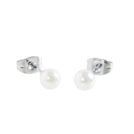 Descrizione: Orecchini lobo con sfere 6 mm. Materiale: acciaio, pvd e/o perla sintetica