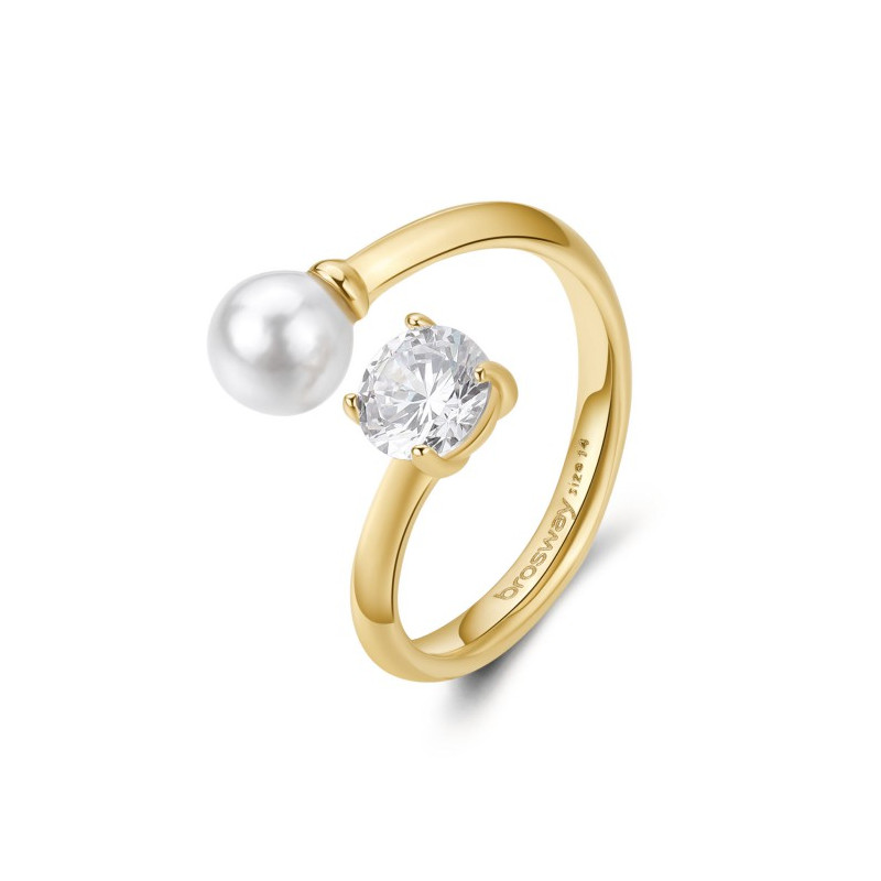 Descrizione: anello contrariè in acciaio con perla di conchiglia e cubic zirconia crystal
