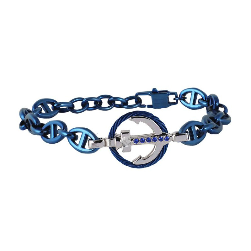Descrizione: bracciale acciaio maglia bastimento e zirconi - simbolo ancora
