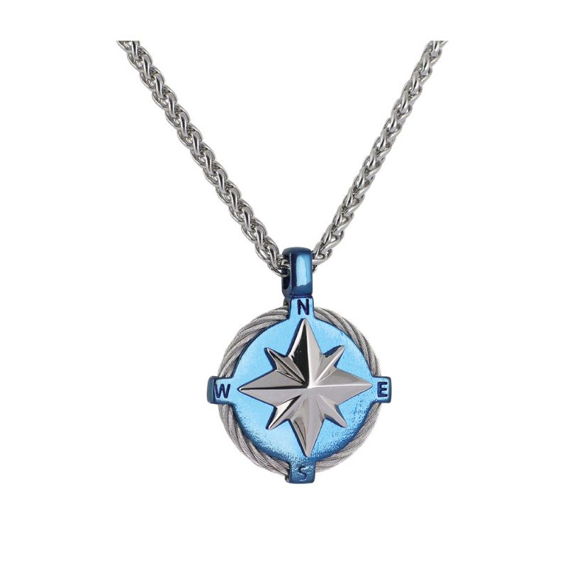 Descrizione: collana in acciaio maglia fune - simbolo rosa dei venti