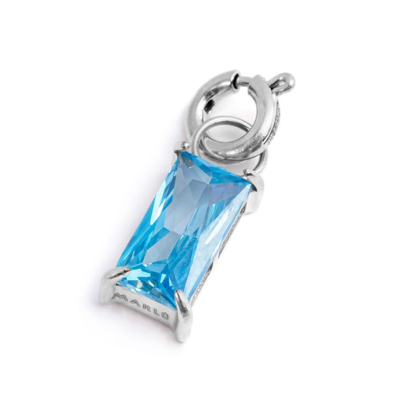 Descrizione: ciondolo con cubic zirconia taglio baguette 8x4 mm. Marlù logo laserato sul fondo.