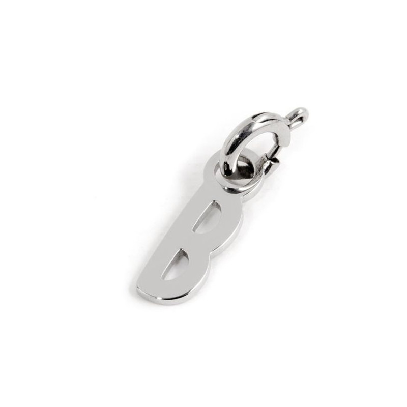 Descrizione: Charm lettere sagomate con mini moschettone. Altezza lettera 12,10 mm. Materiale: acciaio.