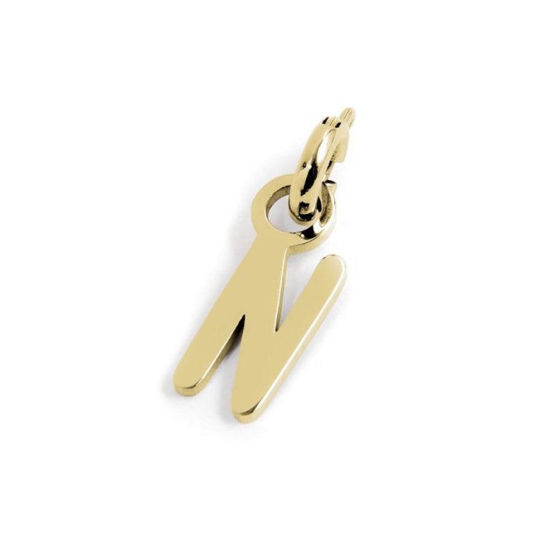 Descrizione: Charm lettere sagomate con mini moschettone. Altezza lettera 12,10 mm. Materiale: acciaio.