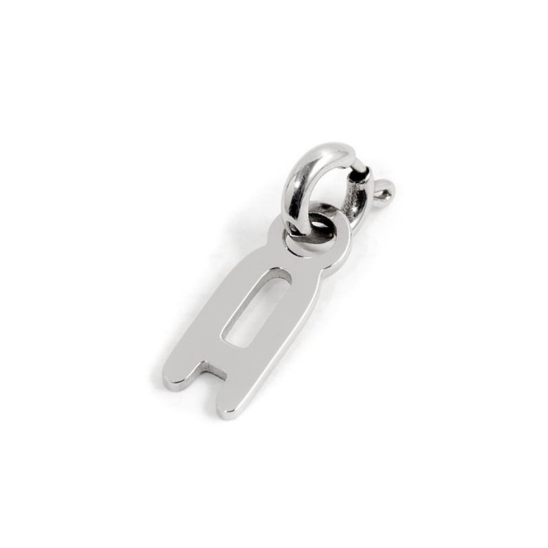 Descrizione: Charm lettere sagomate con mini moschettone. Altezza lettera 12,10 mm. Materiale: acciaio.