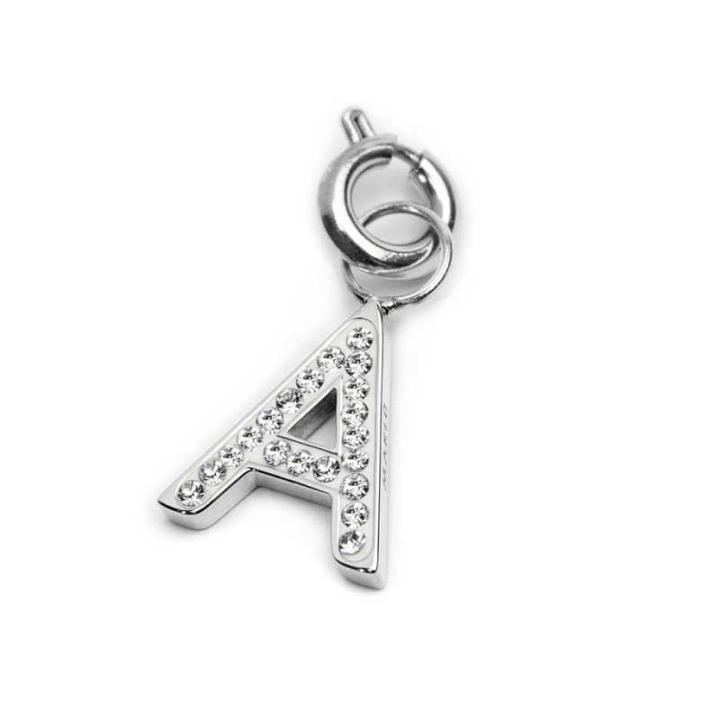 Descrizione: Charm lettera sagomata con cristalli bianchi. Sul retro texture con puntini in rilievo.  Logo Marlù laserato su un lato. Materiale: acciaio