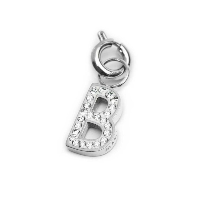 Descrizione: Charm lettera sagomata con cristalli bianchi. Sul retro texture con puntini in rilievo.  Logo Marlù laserato su un lato. Materiale: acciaio